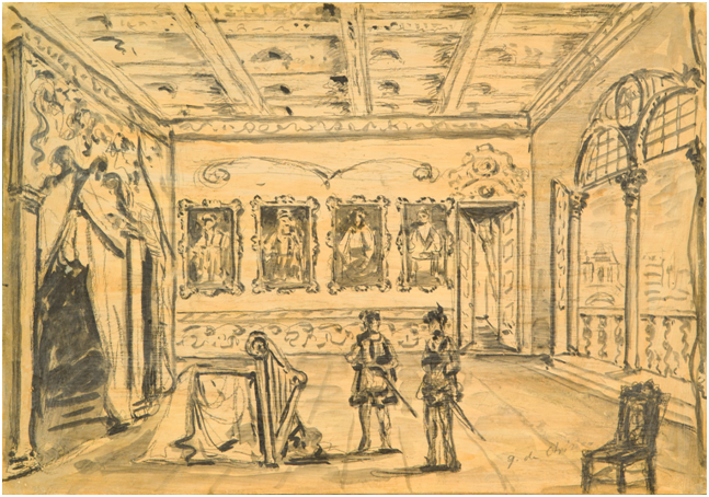“I nostri maestri, prima di ogni altra cosa, c’insegnarono il disegno; il disegno, l’arte divina, base di ogni costruzione plastica, scheletro di ogni opera buona, la legge eterna che ogni artefice deve seguire. Il disegno, ignorato, negletto, deformato da tutti i pittori moderni (dico tutti, compresi i decoratori delle aule parlamentari e i vari professori del regno) il disegno, dico, tornerà non di moda […] ma tornerà per necessità fatale, come una condizione sine qua non di creazione buona” G. De Chirico